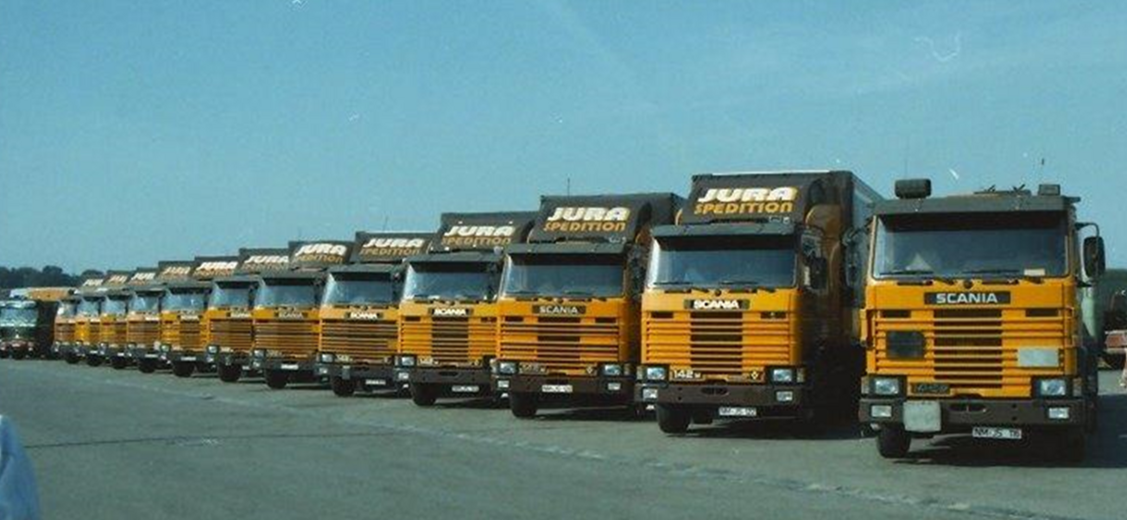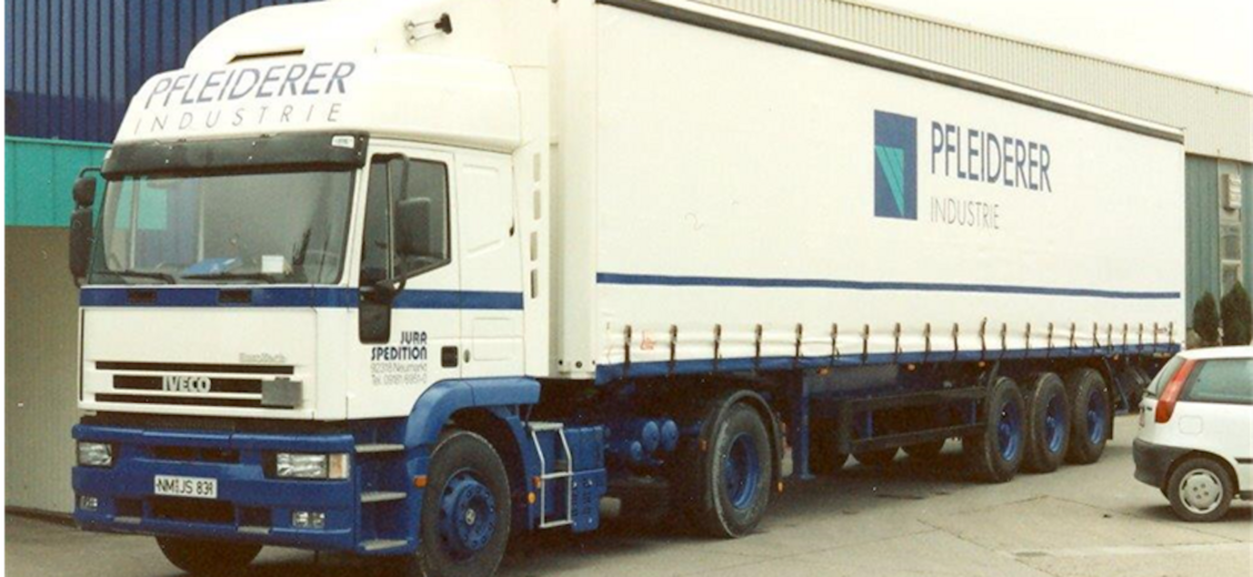 1978 als Ergänzung zu den Fahrzeugen des Werkverkehrs der damaligen G.A. Pfleiderer und als reine Abfertigungsspedition für alle Werke gegründet, war die JURA-Spedition damals schon eine 100%ige Tochtergesellschaft von PFLEIDERER.