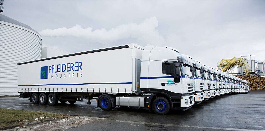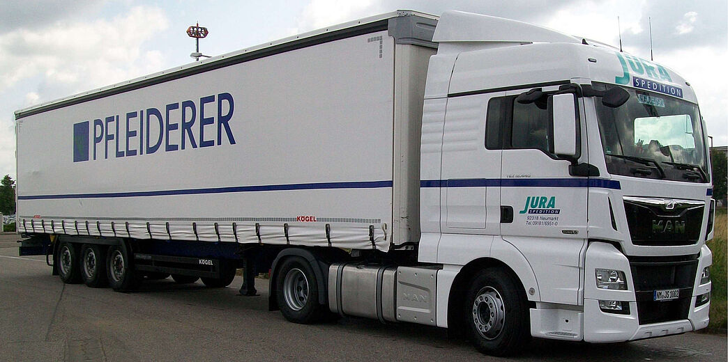 Die JURA-Spedition sorgt als 100-prozentige Tochter des Holzwerkstoffherstellers PFLEIDERER mit Sitz in Neumarkt i.d.OPf. als eigenständige Spedition für die Abwicklung des Frachtvolumens der PFLEIDERER Deutschland GmbH: sowohl für die Transportabwicklung zu den Kunden, als auch für die termingerechte Anlieferung von Rohstoffen wie Leim, Rundholz, Hackschnitzel, Sägespäne und Recyclingmaterial aus Holz zu den fünf Produktionsstandorten.