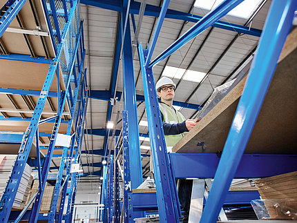 Les rayonnages de grande hauteur résistants, solides et durables, avec une capacité de charge élevée, sont importants pour une gestion d'entrepôt réussie et productive. Pfleiderer propose des matériaux à base de bois exceptionnellement robustes, faciles à transformer et permettant une construction efficace dans la qualité requise.