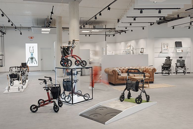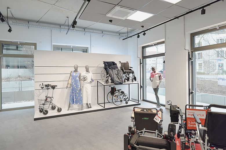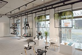 In the concept store and rehabilitation technology department, customers will find not only high-quality aids and products, but also inspiration and excellent service. A unique interior design concept has been created: the light-filled atmosphere invites customers to linger. In addition to health-promoting products and mobility aids, customers will be surprised by a chic selection of fashion, lingerie, attractive home accessories, jewellery, porcelain and gift items.