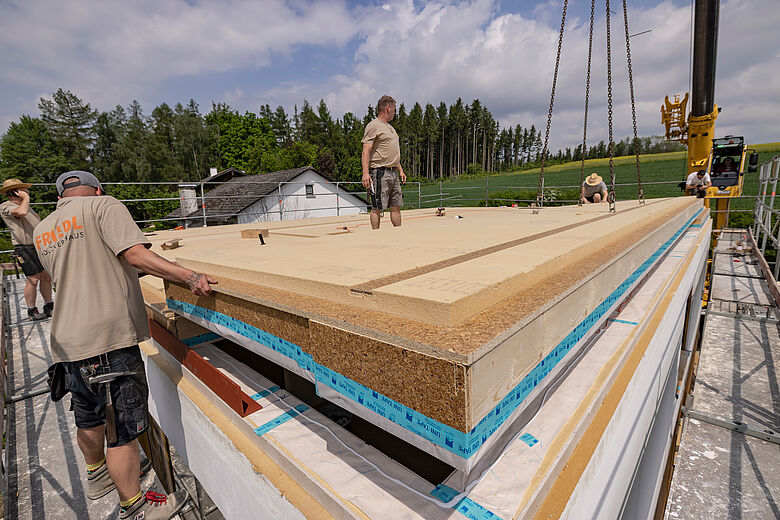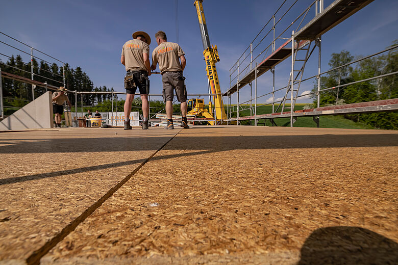 One example of this is the use of Pfleiderer's LivingBoard face contiprotect P5, which was also used in the new show house. This wood-based material is ideal for harsh conditions and impresses with its unsanded contiprotect surface, which delays moisture absorption. "For reasons of healthy living, we use LivingBoard from Pfleiderer for our Friedl Holzwerthaus." This statement from Richard Schinagl Jr. underscores the importance of high-quality materials that match Friedl Holzbau's high expectations. With certifications such as the Blue Angel, Cradle to Cradle Certified® Silver and FSC certification, Pfleiderer meets these high requirements for environmental compatibility and sustainability.