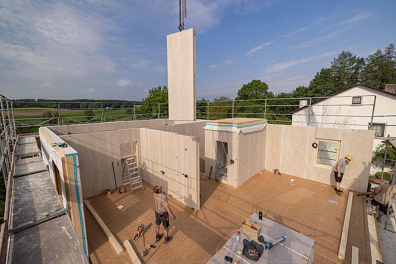 "For us, this results in an intensive planning and consulting phase for each of the approximately 30 houses we implement each year." This approach reflects the values of quality and precision that both Friedl Holzbau and Pfleiderer share. The construction company maintains a close partnership with the manufacturer of high-quality and sustainable wood materials. A harmonious symbiosis of standardised construction elements and the individual wishes of the customers makes each house unique. Despite the high degree of individualisation, Friedl Holzbau also relies on show houses. These are not only used for viewing, but also for testing new technologies under real conditions. Just recently, the company built a new show house in Obersüßbach to demonstrate advances in energy supply and other areas. Among other things, air/water heat pumps, photovoltaics and innovative climate control ceilings are used here.