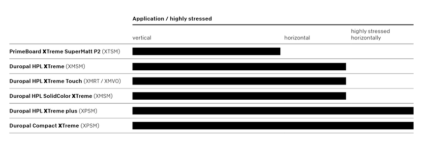 - a robust high-pressure laminate (Duropal XTreme)