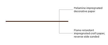 - The decorative surface and the core consists of paper layers, which are impregnated with thermosetting resins. The resins harden completely during the manufacturing process by heat and high-pressure. They form a stable, resistant and non-reactive material.
