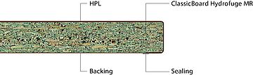 - ClassicBoard Hydrofuge MR: EN 312 standard urea resin bonded furniture panel with reduced thickness swell, suitable for non-load bearing use in humid conditions.