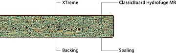 - ClassicBoard Hydrofuge MR: EN 312 standard urea resin bonded furniture panel with reduced thickness swell, suitable for non-load bearing use in humid conditions.