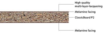- ClassicBoard P2: Urea resin-bonded particleboard, type P2 conforming to EN 312, suitable for non load-bearing purposes in dry areas.