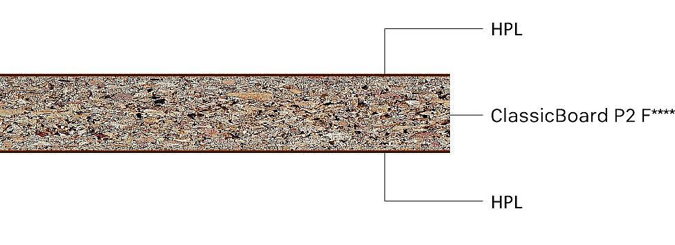 - ClassicBoard P2 F****: 低排放刨花板芯材,符 的P2级,适用于干燥区域的非承重用途。