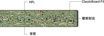 - 装饰表面和核芯由浸渍有热固性树脂的纸层组成。树脂在制造过程中通过高温和高压完全硬化。它们形成稳定、耐用且非反应性的材料。
