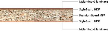 - PremiumBoard MFP Hybrid: Deska PremiumBoard MFP Hybrid je kombinací desky PremiumBoard MFP, která tvoří prostřední vrstvu, a desky HDF použité jako krycí vrstva s tloušťkou 2 mm, kterou lze také potáhnout po obou stranách. Pro lepení mezi deskou MFP a HDF je použito PVAC lepidlo (lepidlo třídy D4). Tato kombinovaná hybridní deska z materiálu na bázi dřeva je na základě své izotropní pevnosti v ohybu, své vysoké odolnosti proti vytažení šroubů a dobré tvarové a rozměrové stálosti vhodná pro použití především tam, kde je důležitá stabilita a zatížitelnost.
