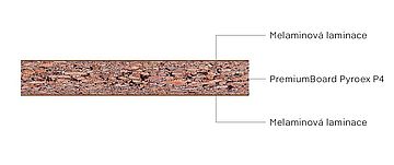 - PremiumBoard Pyroex P4: Dřevotřísková deska typu P4 podle DIN EN 312, k použití pro nosné účely v suchém sektoru, těžko hořlavá.