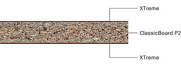 - ClassicBoard P2: Dřevotřísková deska typu P2 lepená močovinovou pryskyřicí podle EN 312, vhodná pro nenosné účely v suchém sektoru.
