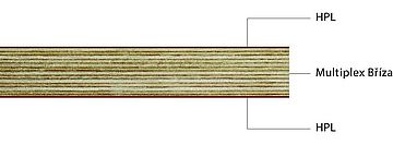 - Dekorativní povrch a jádro materiálu se skládá z vrstev papíru prosyceného duroplastovými pryskyřicemi. Ty zcela vytvrdnou během výrobního procesu žárem a vysokým tlakem. Vytvoří stabilní, rezistentní a nereaktivní materiál.