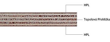 - Dekorativní povrch a jádro materiálu se skládá z vrstev papíru prosyceného duroplastovými pryskyřicemi. Ty zcela vytvrdnou během výrobního procesu žárem a vysokým tlakem. Vytvoří stabilní, rezistentní a nereaktivní materiál.