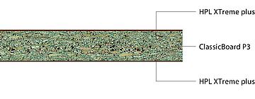 - ClassicBoard P3: Dřevotřísková deska typu P3 vhodná pro nenosná použití ve vlhkých prostorech.