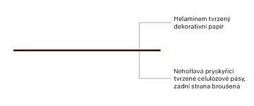 - Dekorativní povrch a jádro materiálu se skládá z vrstev papíru prosyceného duroplastovými pryskyřicemi. Ty zcela vytvrdnou během výrobního procesu žárem a vysokým tlakem. Vytvoří stabilní, rezistentní a nereaktivní materiál.