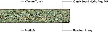 - ClassicBoard Hydrofuge MR: Nábytková deska lepená močovinovou pryskyřicí se sníženým tloušťkovým bobtnáním podle EN 312, vhodná pro nenosné účely ve vlhkých prostorách.