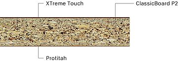 - ClassicBoard P2: Dřevotřísková deska typu P2 lepená močovinovou pryskyřicí podle EN 312, vhodná pro nenosné účely v suchém sektoru.