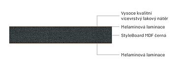 - StyleBoard MDF černá: Dekorativní černě barvená středně hustá dřevovláknitá deska (MDF) s homogenní strukturou.