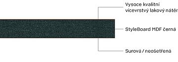 - StyleBoard MDF černá: Dekorativní černě barvená středně hustá dřevovláknitá deska (MDF) s homogenní strukturou.