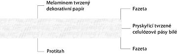 - Dekorativní povrch a jádro materiálu se skládá z vrstev papíru prosyceného duroplastovými pryskyřicemi. Ty zcela vytvrdnou během výrobního procesu žárem a vysokým tlakem. Vytvoří stabilní, rezistentní a nereaktivní materiál.