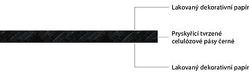 - Kompaktní laminát černý: Homogenní černě probarvené, masivní kompaktní vrstvené jádro, odolné proti nárazu a proti vlhkosti, pro použití na vysoce namáhané plochy.