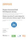 - D-s2,d0 podle EN 13986 v závislosti na použití (Tloušťka: ≥ 9 mm / Hustota (nosná deska): ≥ 600 kg/m³)