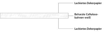 - Kompaktschichtstoff weiß: Homogen weiß durchgefärbter, massiver Kompaktschichtstoffkern, stoßfest für hochbeanspruchte Anwendungen.