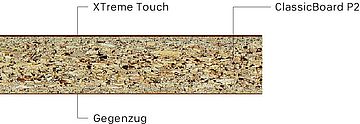 - ClassicBoard P2: Harnstoffharzgebundene Holzspanplatte Typ P2 gemäß EN 312, geeignet für nicht tragende Zwecke im Trockenbereich.