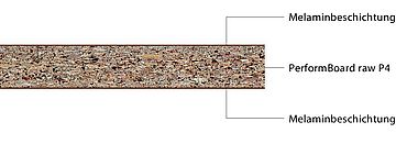 - PerformBoard raw Dfl P4: Holzspanplatte Typ P4 gemäß DIN EN 312, für tragende Zwecke zur Verwendung im Trockenbereich.