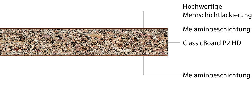 - ClassicBoard P2 HD TSCA: Harnstoffharzgebundene Holzspanplatte Typ P2 gemäß EN 312, hochverdichtet und mit verbesserten Oberflächeneigenschaften.