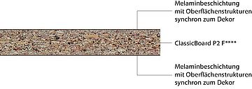 - ClassicBoard P2 F****: Emissionsminimierte Holzspanplatte Typ P2, geeignet für nicht tragende Zwecke im Trockenbereich.