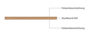 - StyleBoard HDF 106: Hochverdichtete, dünne Faserplatte mit homogenem Aufbau und guter Standfestigkeit.