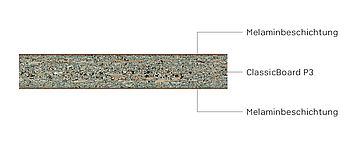 - ClassicBoard P3: Holzspanplatte Typ P3, geeignet für nicht tragende Zwecke im Feuchtbereich.