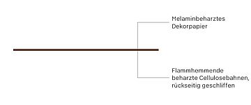 - Die dekorative Oberfläche und der Materialkern bestehen aus Papierlagen, die mit duroplastischen Harzen durchtränkt sind. Diese härten während des Herstellprozesses durch Hitze und hohen Druck vollständig aus. Sie bilden ein stabiles, resistentes und nicht reaktivierbares Material.