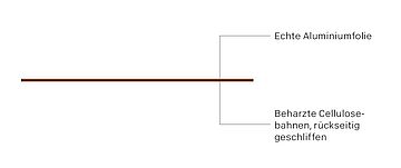 - Die dekorative Oberfläche ist eine lackierte Aluminiumfolie. Der Materialkern besteht aus Papierlagen, die mit einem duroplastischen Harz durchtränkt sind. Dieser härtet während des Herstellprozesses durch Hitze und hohen Druck vollständig aus und bildet ein stabiles, resistentes und nicht reaktivierbares Material.