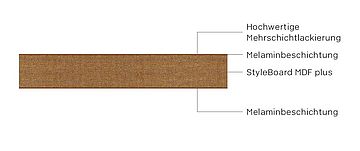 - StyleBoard MDF plus: Mitteldichte Faserplatte (MDF), mit homogenem Aufbau.