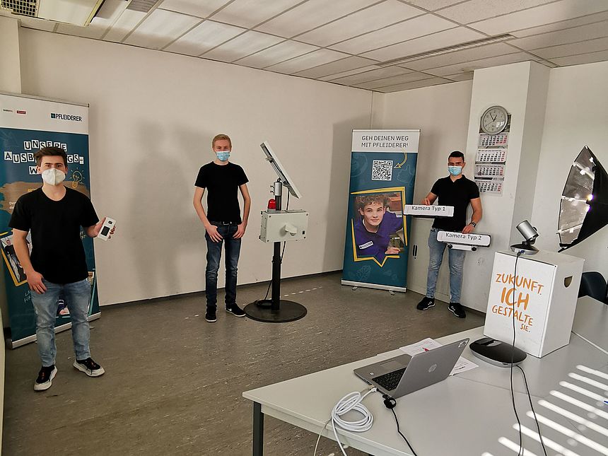 Auch im digitalen Format überzeugten die Jungforscherinnen und Jungforscher mit ihren Ausführungen und Präsentationen der vielfältigen Arbeiten. So auch die drei Auszubildenden von Pfleiderer, deren Projekte sich allesamt der Thematik Arbeitssicherheit widmeten. Tim Becker überzeugte die Jury mit seiner nachrüstbaren 180° Rückfahrkamera und erhielt einen zweiten Preis in der Sparte „Arbeitswelt“. Das zweite Siegertreppchen teilte sich dieser mit Andreas Steinsdörfer, der mit seinem aktiven Spiegel an den Start ging. Dieser Verkehrsspiegel soll durch ein integriertes System das Gefahrenpotential für Fußgänger und Radfahrer an gefährlichen Kreuzungen minimieren. Einem sehr aktuell angehauchten Projekt hinsichtlich der derzeitigen Coronakrise widmete sich Julian Kneißl. Dieser entwickelte eine Handyhülle mit integriertem Desinfektionsmittelspender. Mit seiner Arbeit erreichte er einen dritten Platz, ebenfalls in der Kategorie „Arbeitswelt“.