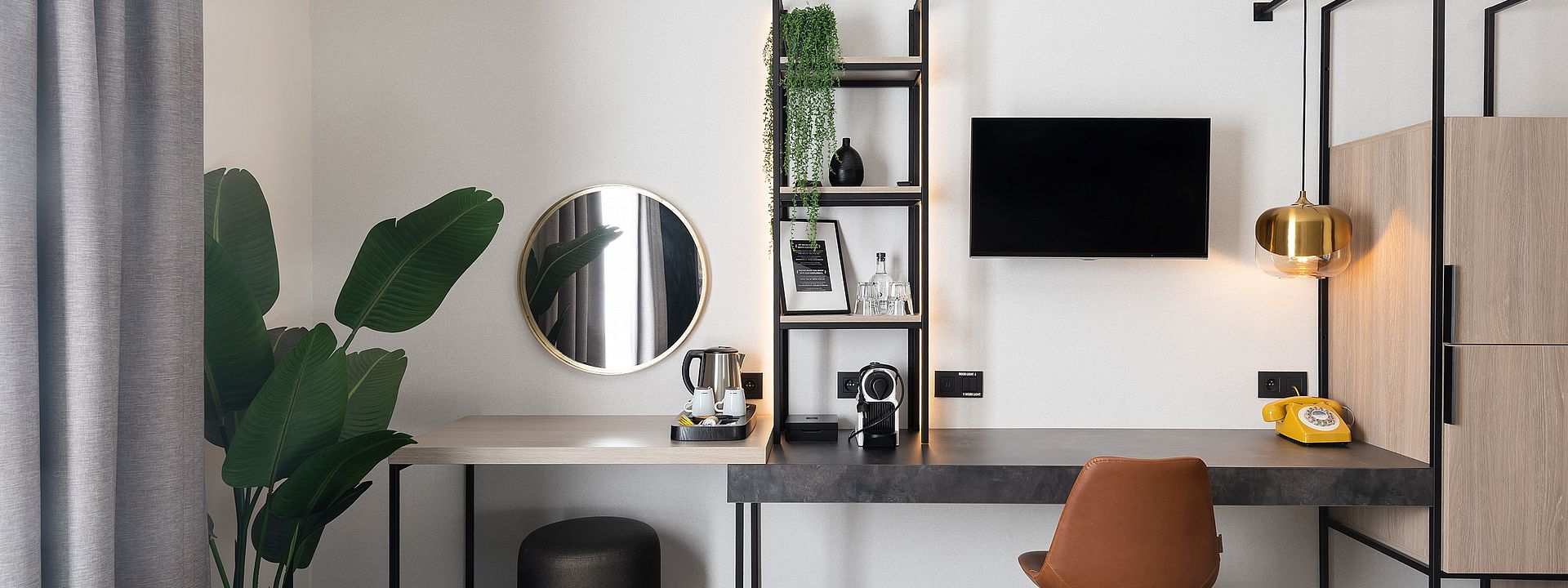 Pascal Sutherland is the owner of Sutherland Design, a hotel and restaurant interior design studio based in Sittard, the Netherlands. When he was asked to come to Hotel Ariane in Ypres in 2018, it was to rework the bar stools in the individual rooms. But the comparatively long journey was worth it: Sutherland's suggestions appealed to the management right away. And so well, in fact, that it didn't just stay with the bar stools. Sutherland Design was commissioned at the end of 2019 to revise the interior design for all 62 rooms and the reception area of the hotel.
