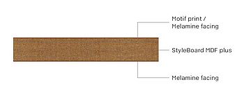 - StyleBoard MDF plus: Medium-density fibreboard (MDF), with a uniform structure.