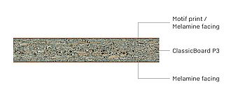 - ClassicBoard P3: Melamine resin bonded particleboard type P3, suitable for non load-bearing purposes in damp areas.
