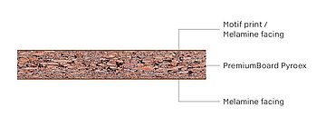 - PremiumBoard Pyroex: Flame resistant particleboard, suitable for non load-bearing purposes in dry areas, for interior fitting and for furniture subject to higher demands on fire protection.