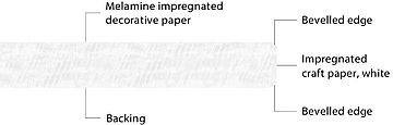 - The decorative surface and the core consists of paper layers, which are impregnated with thermosetting resins. The resins harden completely during the manufacturing process by heat and high-pressure. They form a stable, resistant and non-reactive material.