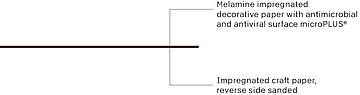 - The decorative surface and the core consists of paper layers, which are impregnated with thermosetting resins. The resins harden completely during the manufacturing process by heat and high-pressure. They form a stable, resistant and non-reactive material.