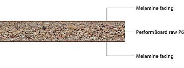 - PerformBoard raw Cfl P6: Wood particleboard type P6 in accordance with EN 312, heavy-duty, for structural purposes for use in dry conditions.