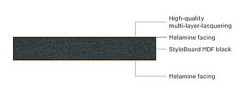 - StyleBoard MDF black: Decorative black through-dyed medium-density fibreboard (MDF), with a uniform structure.