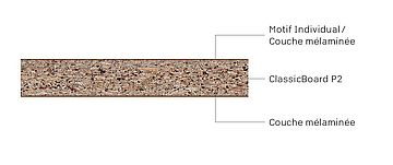 - ClassicBoard P2 : Panneau de particules de bois lié par résine d’urée de type P2 conformément à la norme EN 312, convient aux applications non porteuses dans des conditions sèches.