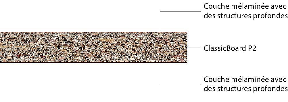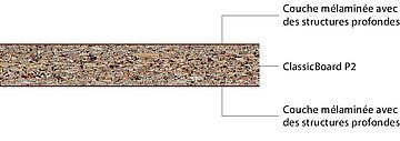 - ClassicBoard P2 : Panneau de particules de bois lié par résine d’urée de type P2 conformément à la norme EN 312, convient aux applications non porteuses dans des conditions sèches.