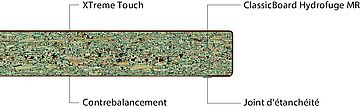 - ClassicBoard Hydrofuge MR : Panneau de mobilier lié par résine d'urée et présentant un gonflement en épaisseur réduit conformément à la norme EN 312, adapté aux applications non porteuses dans des conditions humides.