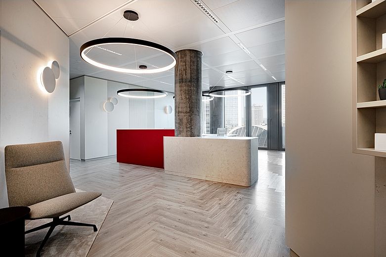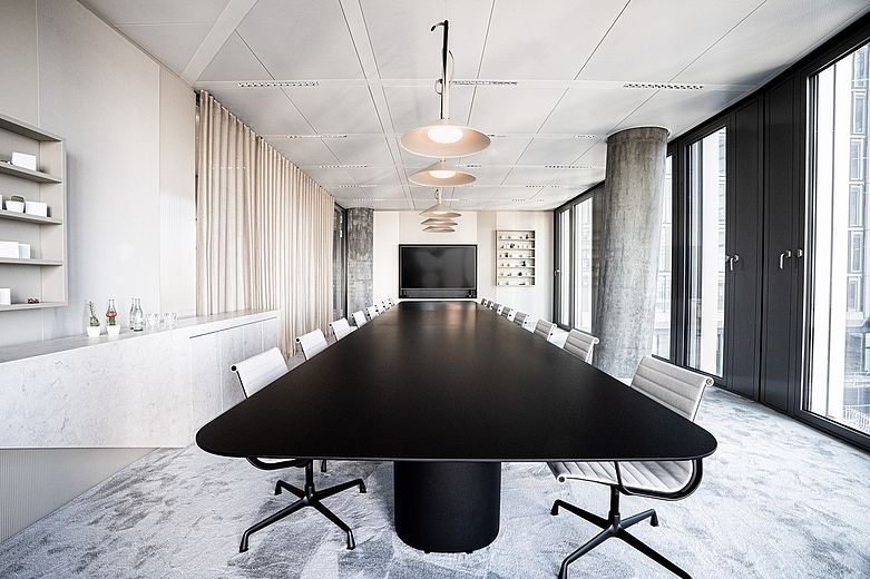 Les quatre tours du FOUR abritent différentes utilisations telles que des hôtels, des appartements avec services, des logements et des bureaux. Avec les places publiques urbaines et les nouvelles liaisons avec le centre-ville, une qualité de vie urbaine est créée - pas seulement pour quelques-uns, mais pour tous. L'un des nombreux étages de bureaux du FOUR a été équipé de panneaux de haute qualité par Pfleiderer.